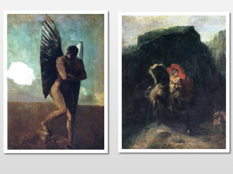 | L: Fallen Angel looking at a Cloud 1875 R: Roland at Roncesvalles 1869 |