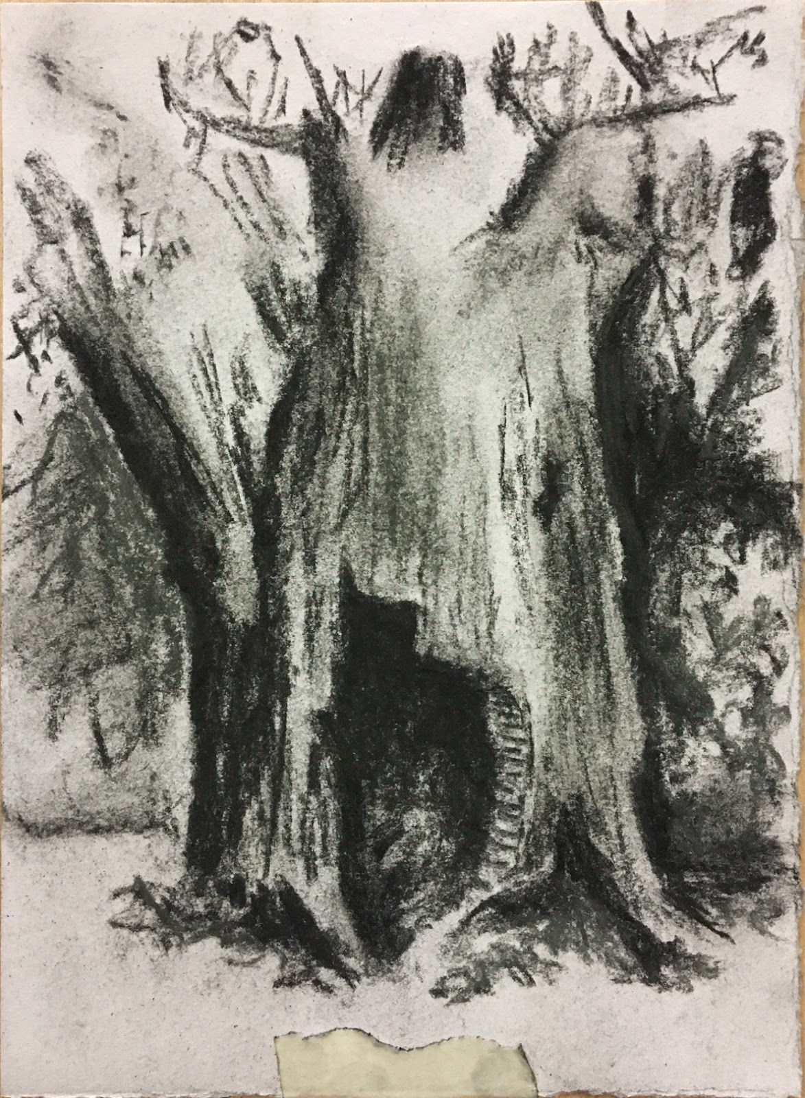 However, after completing the copy of Redon’s ‘I placed myself in Solitude’, it felt like the charcoal was almost too soft. I wasn’t gaining the texture within the drawing. Tone is very evident but on closer study, more detail comes out of the picture. A soft, yet at the same time finer point could be needed – maybe a 4/5B pencil would have been better.