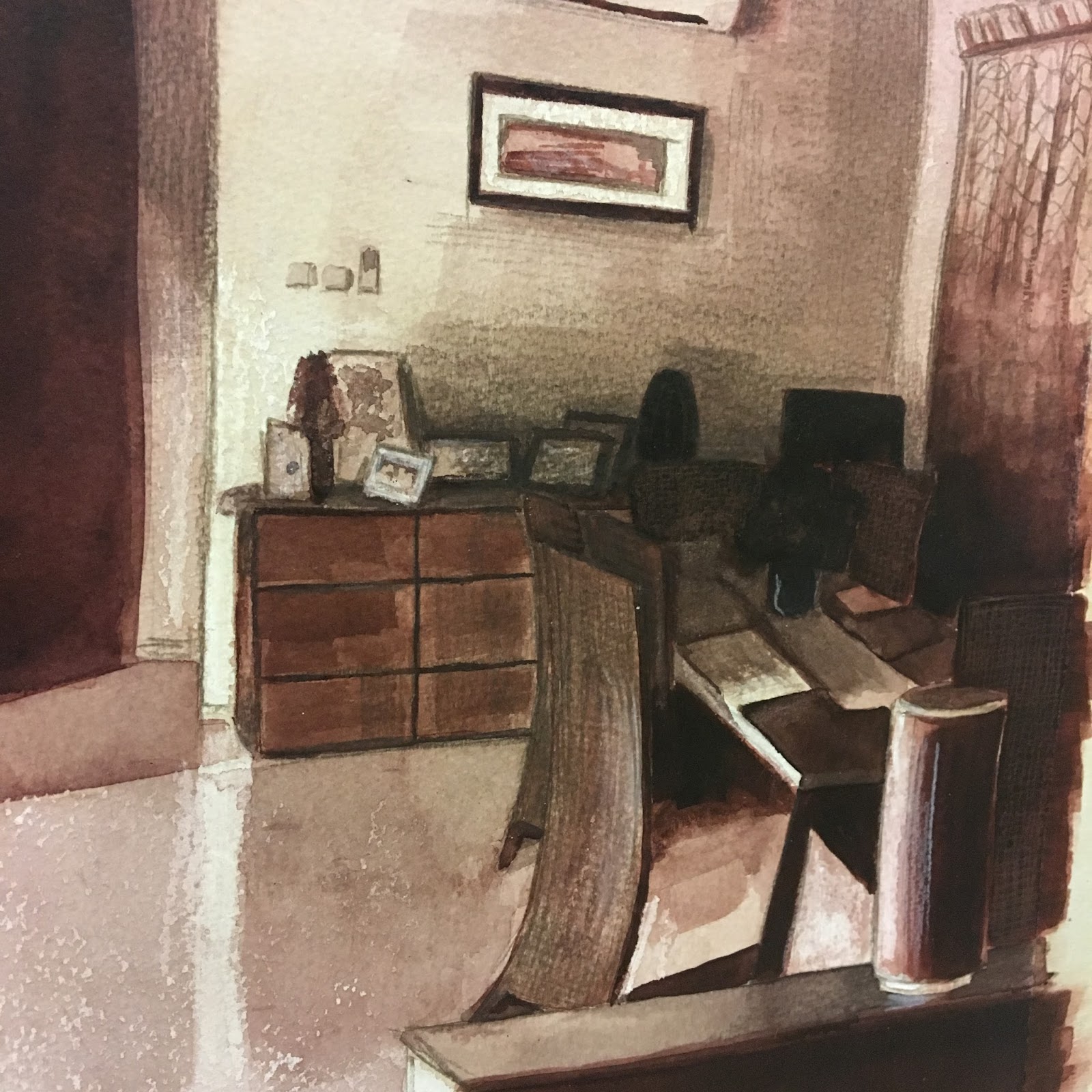 In my previous blog outlining my preparation for the first assignment, I brainstormed several objects around me that meant something in some way. Referring back to the mark-makimg exercises and the emotive response I needed to reflect on, I knew I needed to have a variety of reactions to the objects in order to deepen my drawing response. I also mentioned that the media I would choose for each object reflect the marks I want to make, I feel they matched the mood I would be trying to create in each part.
