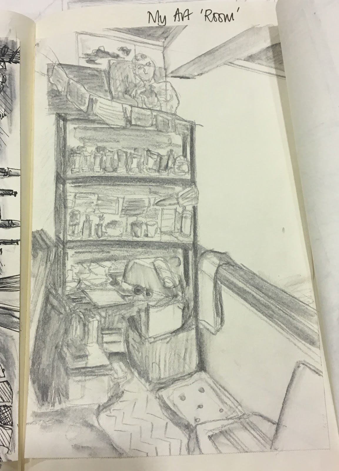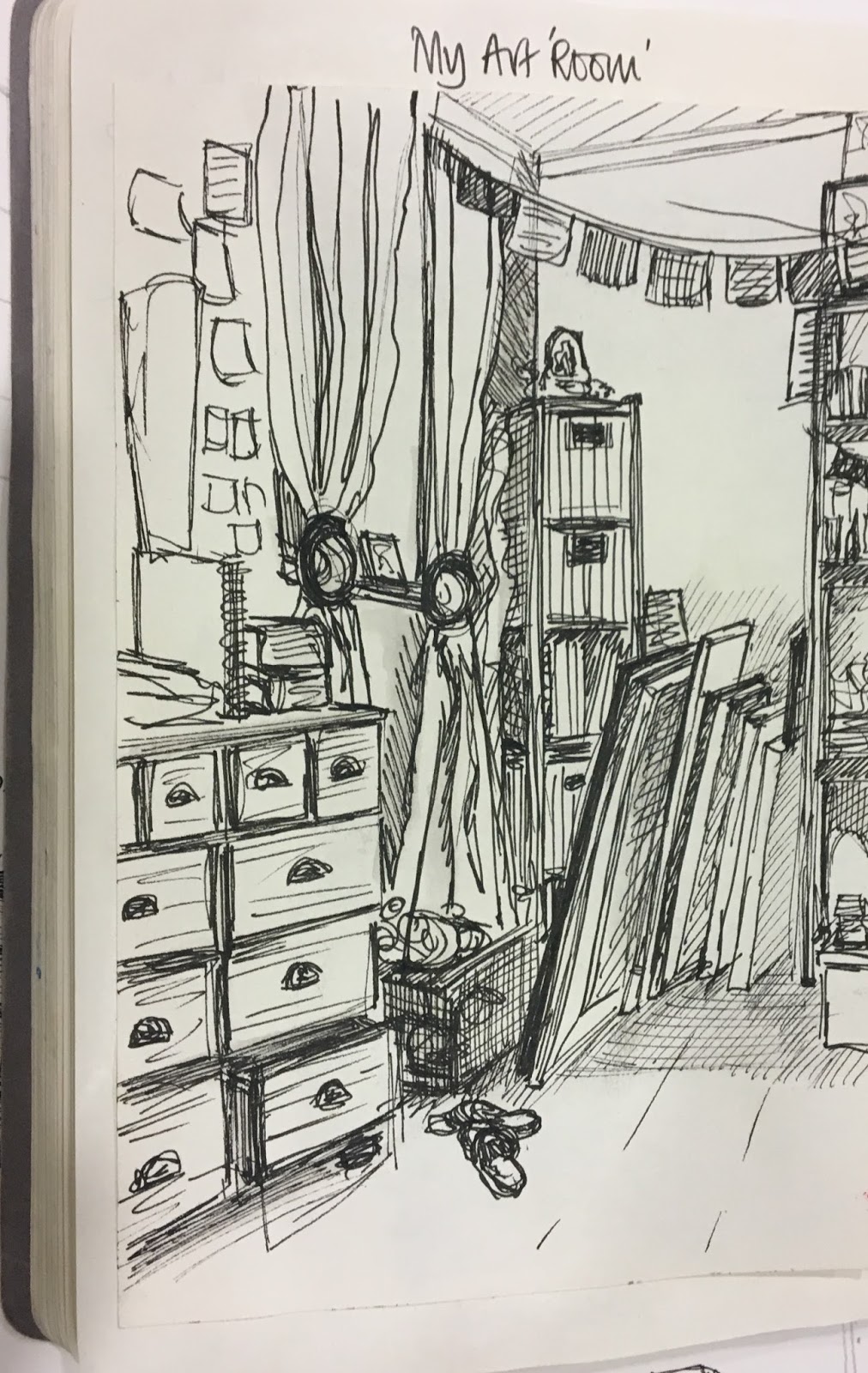 I initially enjoyed working on the fabric but ended up spending all my time on it. I had to move away from it. I was struggling with the making the tones looked realistic and accurate. I realise that I have probably made work for myself in making the painting up by referencing and observing only parts at a time.