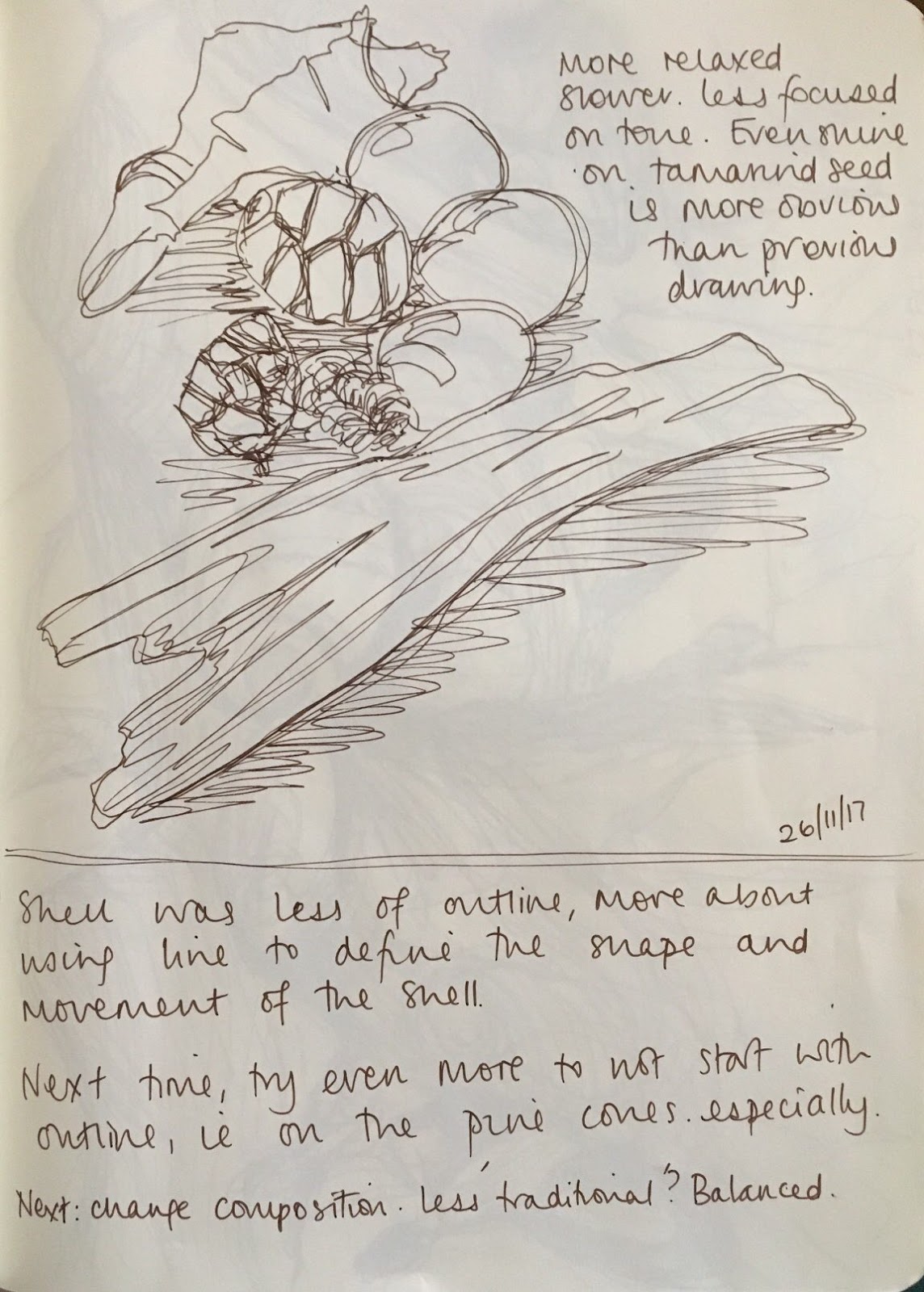 I know that one of the points in the assignment outline was to create preliminary drawings for this assignment. I worked on basic composition but wanted to get this piece out in its simplicity, with John Virtue in mind the whole time. Hence I knew I would work with pencil only. I might have added ink if there were any distinct, man-made lines, like the telegraph poles in Green Haworth from South. I did not want to risk overworking this piece and I am a lot happier this time round. Not satisfied entirely, I’d like to continue practicing building and layering the Virtue-style marks to create depth as well as tone but for now, I need to step away and move on.