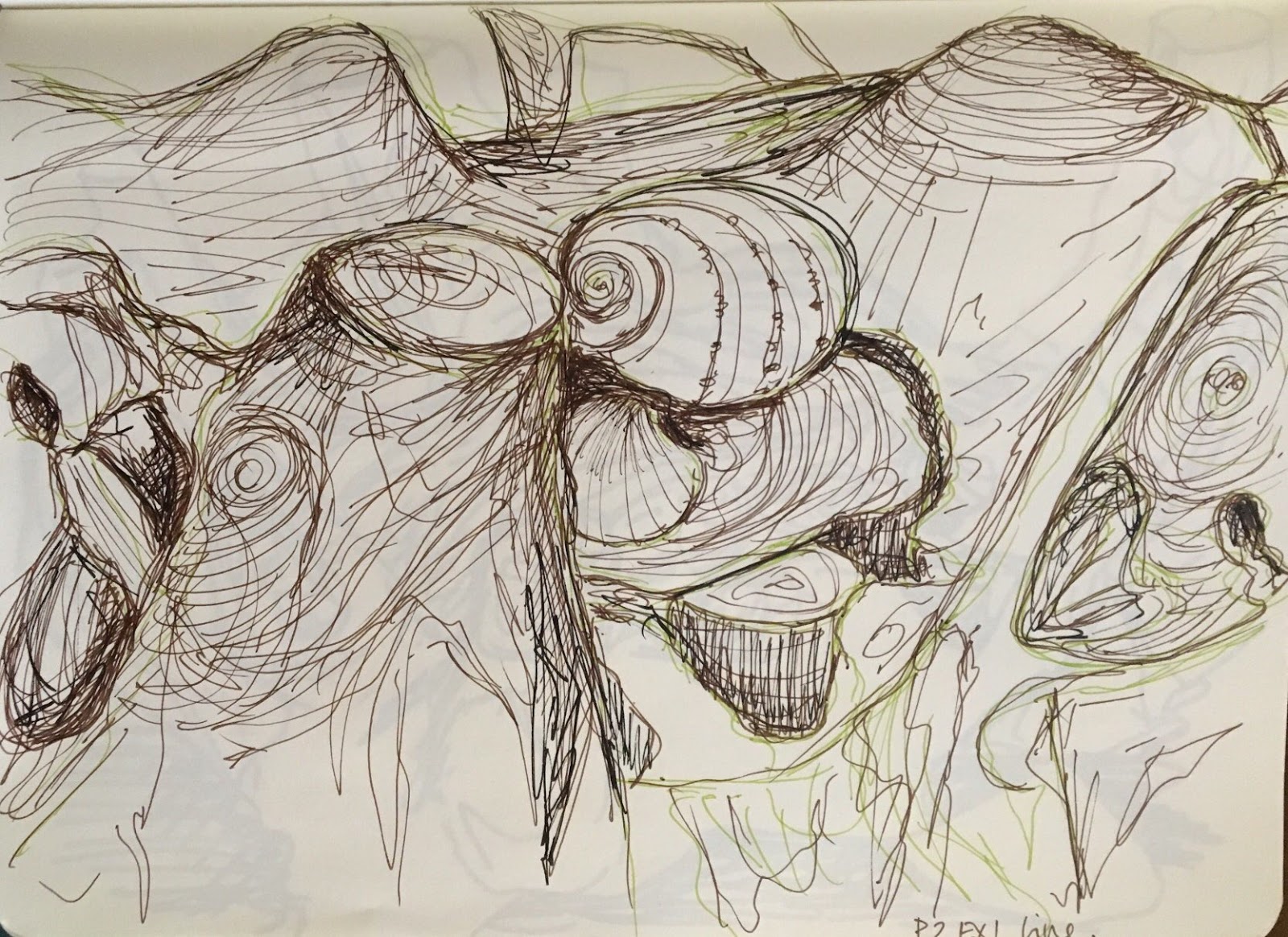 I had three ideas forming – oil pastels, textured, and wash; watercolour pencils and pen and ink; pen and ink and watercolour. I considered the oil pastels as they offered an unpredictability and a full thickness to match the lush feel of a temperate landscape. However, in the end I chose not to go this route after I lost myself in John Virtue’s tonal pencil drawings from the 1970s.