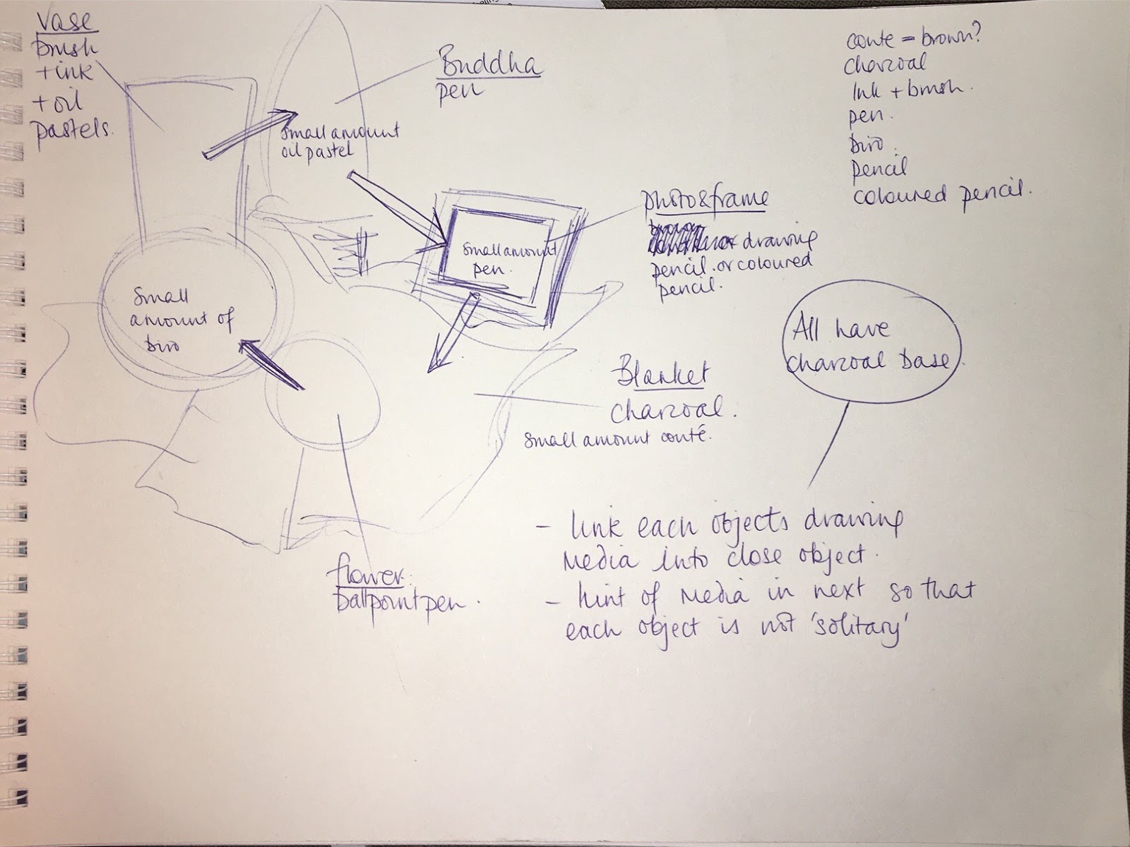 However, I thought I might work with this ‘obstacle’ in my assignment. So, yes, use a range of media but demonstrate connection between the objects, i.e. bring a hint of one medium in to another.