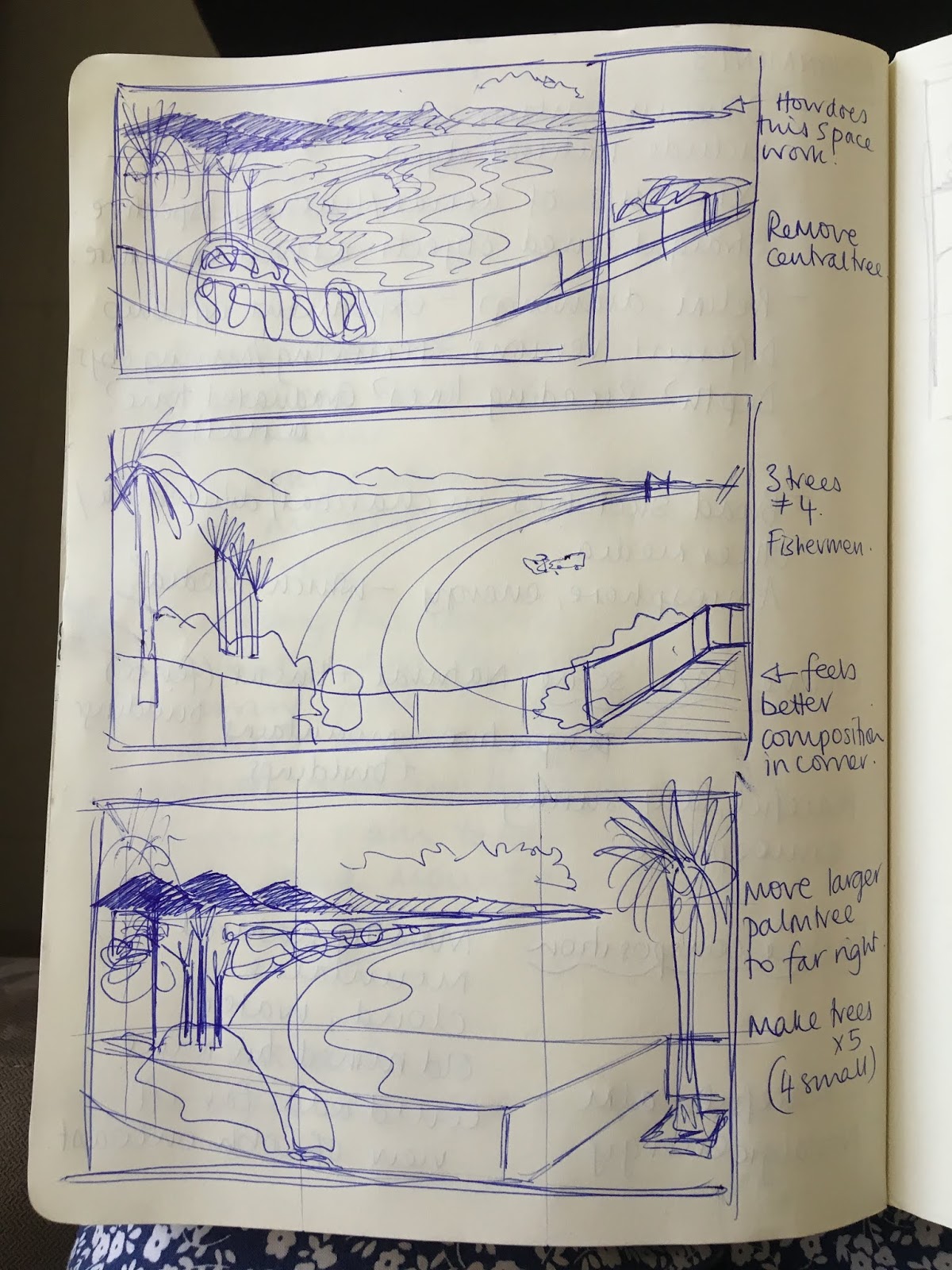 I sometimes experiment digitally to establish composition and colour plans. It seems to be a more time-efficient tool for planning.