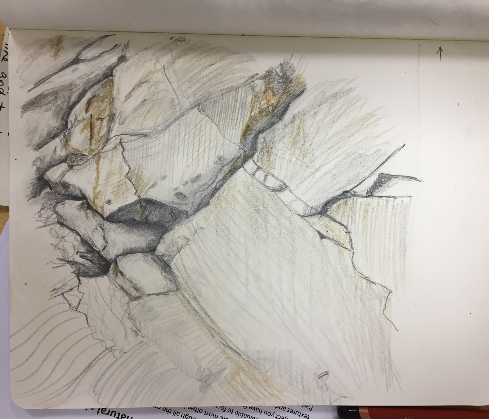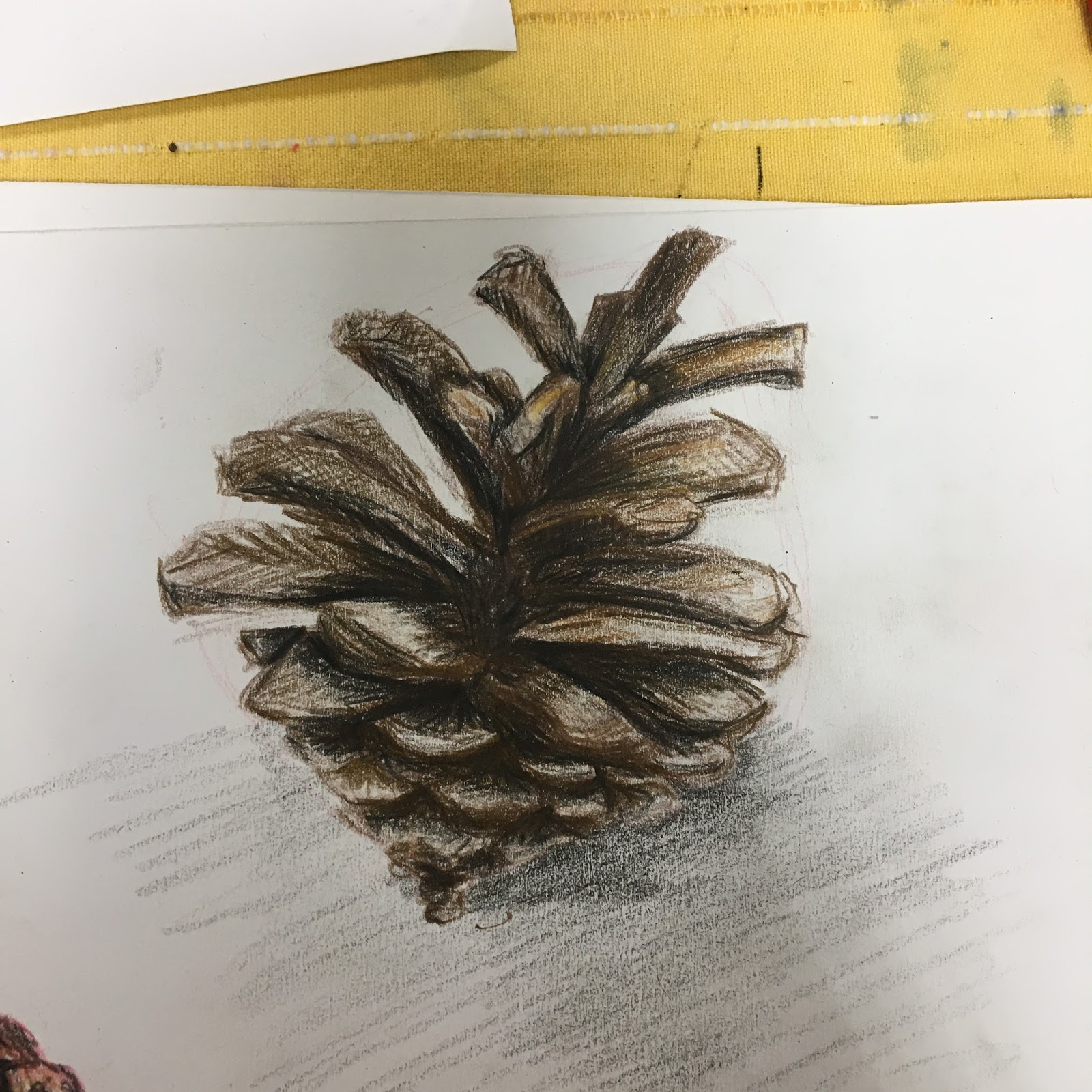 I initially enjoyed working on the fabric but ended up spending all my time on it. I had to move away from it. I was struggling with the making the tones looked realistic and accurate. I realise that I have probably made work for myself in making the painting up by referencing and observing only parts at a time.